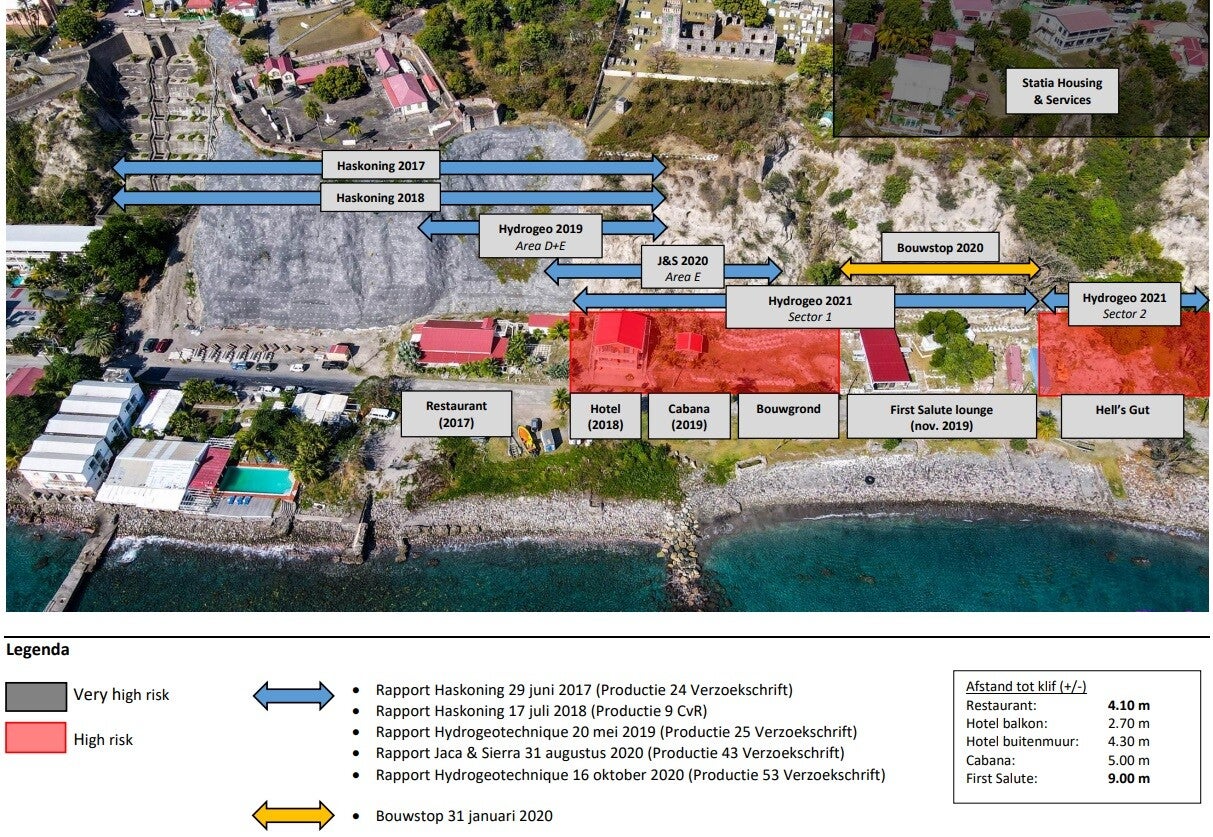 Eco Statia NV is a company that was established on Sint Eustatius in 2010 with the intend to start a hospitality business on the island to help bring more tourism to this wonderful hidden Caribbean gem. In 2014, the building permit was issued, without any specific restrictions or warnings about the cliff.