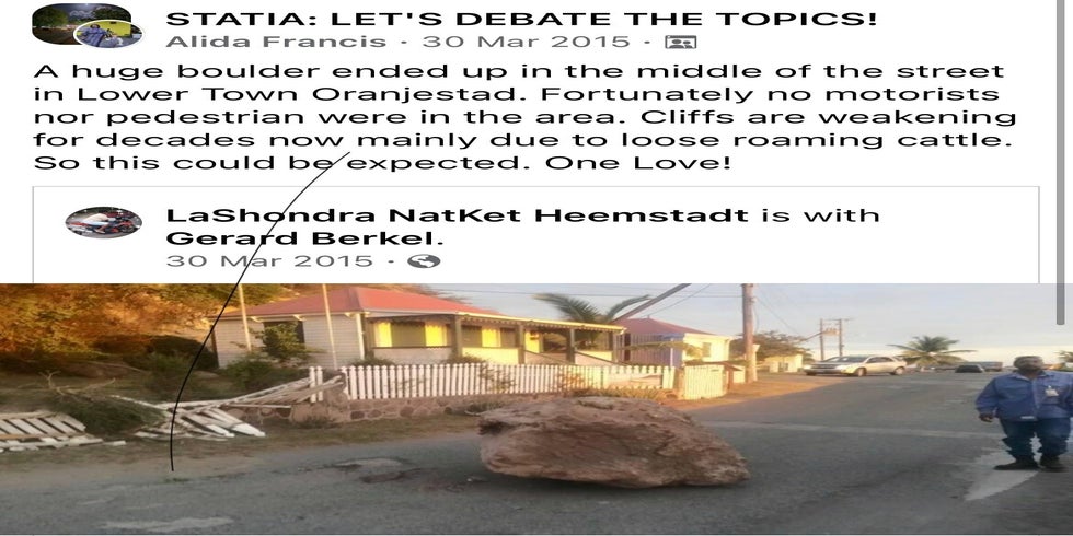 Over the years there have been numerous incidents in Lower Town with falling rocks and boulders, also at the Stuco plant by the harbour when a falling boulder causes an island wide power outage. Citizens (also Alida Francis, current government commissioner) have been voicing their concerns about the roaming goats and erosion problems via social media for years.
